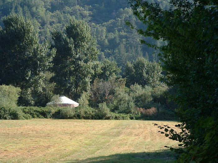 The mighty Klamath River is on the other side of the Yurt across the meadow.